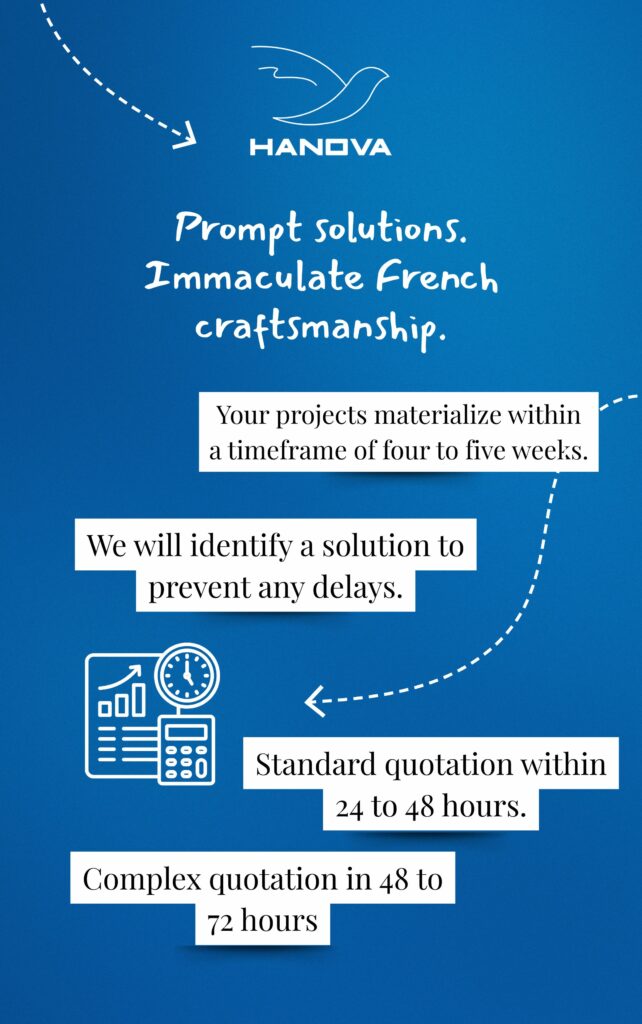Generally speaking, your projects take shape in 4 to 5 weeks, but if an emergency arises, we know how to reorganise ourselves and find a solution that avoids any delays.