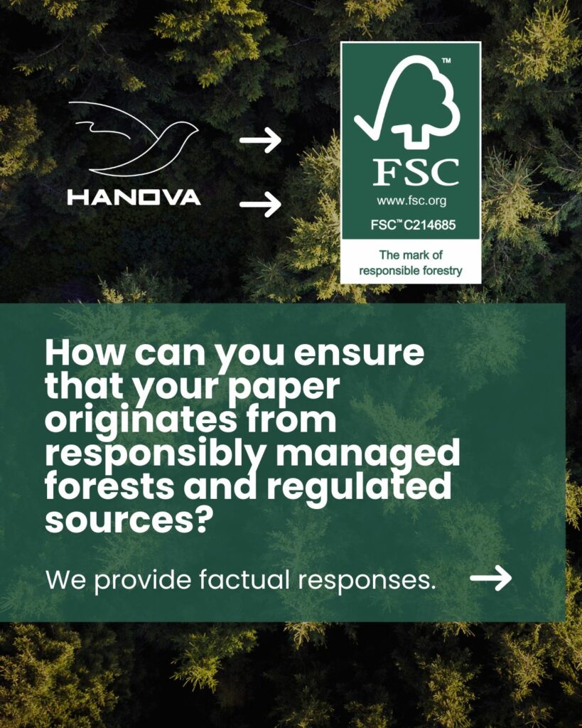 Our company Hanova holds an FSC® Chain of Custody (CoC) certification for our Novafood range.